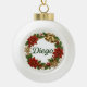 Create a warm and personal holiday keepsake with this charming Diego Christmas ceramic ornament, designed to bring festive beauty and meaningful detail to your seasonal décor. This ornament showcases the name Diego in a graceful Christmas script, printed in full color inside a snowflake-framed ceramic ball. The artwork is adorned with traditional holiday elements including poinsettias, holly leaves, red berries, soft snowflake accents, and subtle golden highlights that glow beautifully when displayed on a Christmas tree.