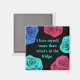 A square fridge magnet in black with colour pop roses on it in blues and pinks. The writing says "I love myself more than what's in the fridge". You can change the background and text colour if desired and even the wording by clicking the "customise" button.