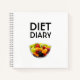 Diet diary design with colourful delicious fruit salad, mixed fruits like cherry, kiwi, mango, strawberry, blueberry, melon. Personalised text.