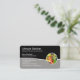 Modern business cards designed with a food emblem for a Dietician or Nutritionist in a sleek modern design template.