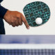 Cyan stamped with different chess, squares or image under grating? From a distance, he sees cyan fish scale, closely chess?