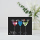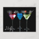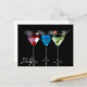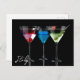 Different cocktails in martini glasses on black postcard