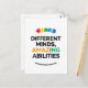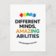This impactful awareness design celebrates neurodiversity and inclusion through bold typography and vibrant puzzle symbolism. The phrase “Different Minds, Amazing Abilities” highlights the value of unique ways of thinking and diverse strengths. Colourful accents and clean typography create a strong emotional connection while delivering a positive message of acceptance, respect, and empowerment. Ideal for spreading awareness and supporting inclusive communities.