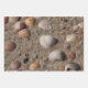 Three different photos of sea shells at a sandy beach as a unique wrapping paper for your presents.