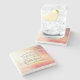 The coasters are gorgeous, a quality feel and heavy weight. They look like a precious archeological find. A rustic stone juxtaposed with a modern floral black and white print. I like the way the print goes slightly imperfect on the cut stone edges giving them a kind-of natural beauty.