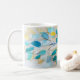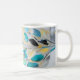 Fluid turquoise and soft coral tones ripple across this mug like waves meeting petals. The design evokes coastal calm and blooming renewal—a refreshing companion for any beverage. A thoughtful gift or a creative way to infuse art into your everyday rituals.