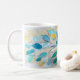 Fluid turquoise and soft coral tones ripple across this mug like waves meeting petals. The design evokes coastal calm and blooming renewal—a refreshing companion for any beverage. A thoughtful gift or a creative way to infuse art into your everyday rituals.