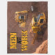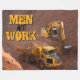 This cool fleece blanket features a stunning photo of a yellow digger tractor and a dump truck on a construction site with the customisable text, "Men at Work."