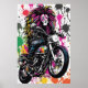 Embrace Funny Lion Digital Art Painting. Rainbow Colours, Fierce Lion Illustration Digital Print Graphics. Instant download, printable or both. Digital Art Features Goth Lion in Bikers outfit riding a fancy motorbike on a rainbow splatter painting.