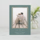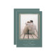 A modern and minimalist save the date design with chic geometric accents. Your vertical photo is framed by a double geometric border in faux rose gold foil, with your wedding details beneath. An ethereal calligraphy script accent adds a touch of softness to this simple and minimal design. Add additional details to the colour-coordinated back, like your wedding website. This design is optimised for sharing digitally, with a rose gold foil effect that mimics out matching printed style in real foil.