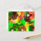 A blank postcard with a pour painting fluid art effect with Autumn colours, orange, black, burgundy, yellow and lime green.