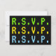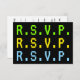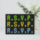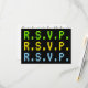 This nerdy RSVP card design features the message "R.S.V.P." on the front. It also features a personalised RSVP form on the back for the recipient to complete. RSVP cards like this could perhaps be used to find out who will be attending a wedding shower, a birthday party, a baby shower, or some other celebration.
