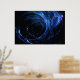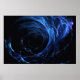 A blue fractal wave design on a black background.