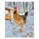 This photo print features a beautiful leghorn hen posing in front of her home in Connecticut.