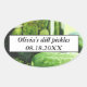 Dill pickles, mason jar, homemade cucumbers stickers. You can personalise it with your name and date.