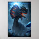 While famous for its thrilling (and fictional) venom-spitting and neck-frill in the movies, the real Dilophosaurus was even more incredible. This poster celebrates the true form of the Early Jurassic predator in all its natural glory. Featuring its signature double crests and powerful build, this artwork is a tribute to the actual palaeontology behind the pop culture icon.