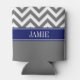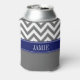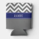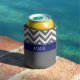 Dim Grey White LG Chevron Navy Name Monogram Can Cooler