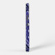 Reminiscent, of a Moroccan-style carpet, this abstract, monogram design, is displayed in-glowing colours, of navy-blue, lavender, black, and white.
