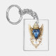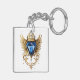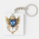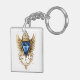 Visualise a sleek keychain that embodies a unique blend of elegance and mysticism. The centerpiece is a finely crafted diamond-shaped charm with a reflective surface, catching and reflecting light with every movement. At the top of the diamond, majestic crow wings unfold, symbolising freedom and a touch of enigma.