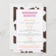 This birthday invitation and itinerary template features space cowgirl inspired silver glitter, retro fonts, and cow hide and an editable backside itinerary. Easily edit most wording to meet the needs of your event. This invitation is perfect for a birthday weekend or other party outing.