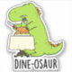 Dine-osaur Funny Dinosaur Pun features a cute dinosaur acting all prim and proper sitting at a table dining on a roast chicken. Perfect Puns gift for family and friends who love cute dinosaur puns.