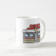 Retro classic vintage diner with burgers and malts. Clock under the sign. Red, silver, grey, black, white, light blue and pale yellow. You can change the background to any colour.