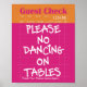 Turn up the personality in your space with this retro diner guest check wall art poster featuring the playful phrase, “Please No Dancing On Tables.” Designed with a bold pink and orange color palette, this piece captures the nostalgic charm of vintage restaurant order pads while adding a modern, humorous twist.