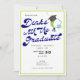 Choose this Dinks with the Graduate Pickleball Graduation Invitation and celebrate your Graduation in style. The invite's design features retro groovy script typography and hand-drawn pickleball paddles with a graduation cap. The colour palette is dark blue with chartreuse on a simple white background. Happy graduation!