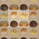 Illustration features a delicious assortment of dinner bread rolls (classic dinner roll, kaiser roll, pumpernickel roll, and whole wheat roll with oats). Ideal for your favourite foodie, or as decor for a "bun in the oven" themed baby shower.