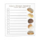 Notepad design features an original illustration of a delicious assortment of dinner bread rolls (classic dinner roll, kaiser roll, pumpernickel roll, and whole wheat roll with oats). Ideal for your favourite bakery or as a gift for any foodie!