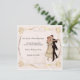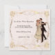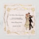 Gorgeous unique dinner and dance party invitation. Romantic image of a couple dancing. The gentleman is dressed in a black suit with tails and the lady is dressed in a cream coloured dress. This invitation is highlighted with gold effect borders with flowers in each corner. Easily customisable for you to add your own party details. Each dinner and dance party invite comes complete with a white envelope.