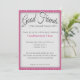 This dinner party invitation features an elegant pink quatrefoil pattern. Header reads "Good Friends, Good Food". This invitation is customisable. Add your own text and party details!