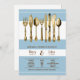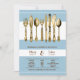 A chic, elegant and classy design of vintage faux gold cutlery set against a blue background with white stripes