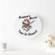 This adorable kitchen clock features a cute baby elephant illustration proudly carrying an oversized ice cream cone stacked with colorful scoops, paired with the funny phrase “Dinner’s Over! Time for Dessert!” -- perfect design for ice cream fans, dessert lovers, and, of course, elephant fans.