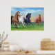 Realistic painting of horses coming home to the barn for dinnertime by equine artist Carolyn McFann of Two Purring Cats Studio. Choose your poster size from small to huge.