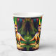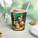 Dino four colourful dinosaur birthday party tableware personalised template party cups, dinosaurs wearing party hats with a birthday cake dinosaur birthday paper cups