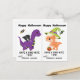 This cute Halloween postcard is designed to be easily cut into two cards. The image is of two different adorable "monster" dinosaurs. One wears a witch hat and carries a jack o' lantern treat basket full of candy. The purple one has black wings and carries a few spider webs. A few funny bats fly around. The black text above each image says "Happy Halloween", and below "Have a Dino-Mite Time!" with your signature. Perfect for elementary or pre-school students to give to their friends at their school Halloween party, and economical, too! And teachers can also customise it to give out to students!
