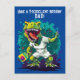 Imagine a vibrant and cheerful happy birthday postcard, designed to bring joy to any recipient. The front of the postcard showcases a delightful scene: a very committed T-rex holding a pickleball paddle, ready to celebrate with a winning point. The artwork is colourful and detailed, capturing the T-rex's festive spirit and the excitement of the occasion.