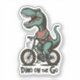 Dino on the Go, this cute kids dinosaur design features a dinosaur riding a bicycle with text saying "Fino on the go".