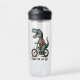 Dino on the Go, this cute kids dinosaur design features a dinosaur riding a bicycle with text saying "Fino on the go".
