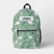 Make school time extra fun with this personalised dinosaur backpack! Featuring a seamless pattern of cute white dinos and tropical leaves on a sage green background, it's perfect for preschool and kindergarten. Add your child’s name for a unique back-to-school gift! Great for daycare, toddler adventures, and early learning.
