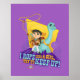 This vibrant design showcases a scene from Dino Ranch, featuring the determined young cowgirl Min, with her signature dark hair in a braid, yellow cowboy hat, brown vest, white pants, and black boots. Min is skilfully twirling her lasso, ready for any ranch adventure. Standing faithfully by her side is Clover, her friendly, light blue brontosaurus, complete with a yellow saddle. The background bursts with dynamic purple and yellow geometric shapes, along with a star emblem, enhancing the energetic and playful atmosphere of the Dino Ranch. The empowering text "I ROPE LIKE A GIRL, TRY TO KEEP UP!" is prominently displayed at the bottom. This artwork perfectly captures the fun, friendship, and adventurous spirit of Dino Ranch, making it ideal for fans of the show.