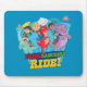 This design captures the spirit of adventure and friendship that defines Dino Ranch. It features the show's core group of human characters - Jon, Jane, and Miguel - riding their trusty dinosaur companions. The scene is filled with energy and movement, as the riders and their dinosaurs embark on a thrilling journey. Jon, Jane, and Miguel, with their cheerful expressions, are positioned confidently on their respective mounts. The dinosaurs, Blitz, Clover, and Tango, rendered in the show's signature bright and friendly style, display a range of personalities and poses. The phrase "DINO RANCHERS RIDE!" is prominently displayed, adding a sense of excitement and adventure to the scene. The overall design is vibrant and dynamic, reflecting the fun and excitement of the Dino Ranch world.