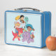 This is a standard metal lunchbox that appears to work just fine. We designed this box ourselves with an uploaded photo and custom text on the front and back. It looks absolutely beautiful except the front of the lunchbox is not centered like it shows in the photo. The print borders don't align with the inset flat part of the box where the preview photo online showed it perfectly centered in there. The back looks nice and centered though.