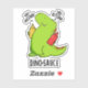 Dino-Sauce Funny Dinosaur Pun features a cute dinosaur with his favourite mustard and ketchup sauce bottles. Perfect pun gift for family and friends who love cute dinosaur puns.
