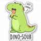Dino-sour Funny Dinosaur Pun features a dinosaur with his face puckering up after sucking on a lemon . Perfect Puns gift for family and friends who love cute dinosaur puns.