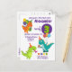 Get ready for a Dino-tastic celebration! This adorable dinosaur birthday postcard invitation is perfect for a roaring good time as your little one turns 3. Featuring colourful dinosaurs in party hats, balloons, cake, and a fun prehistoric theme, this invitation sets the tone for a fun-filled birthday bash. With playful typography and customisable details, it’s an exciting way to invite family and friends to the party.
