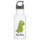 Custom Bottle featuring an original illustration of a lovely cute dino dinosaur Trex created in colague style with shadows, under the dinosaur is a place where you add your name. Perfect for kids.