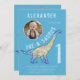 One-a-saurus Dinosaur 1st birthday party blue invitation with photo template for the boy who loves dinosaurs. This cute watercolor Brachiosaurus and pterodactyl flying dinosaur invite you to a fun dinosaur themed 1st birthday party. Personalise this dinosaur party blue invitation with a photo of the birthday boy, the number of the birthday and the party details and you are all set for a fun packed dinosaur themed birthday party. All dinosaur lovers are welcome. Original artwork by Catherine Sweetman