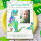 Add a photo of your little wild one and all your party details to create a roaring colourful T-Rex and cute stegosaurus personalised 1st birthday invitation. All dinosaur species are welcome. Prehistoric jurassic era Dinosaur illustrations, original artwork by artist by Catherine Sweetman